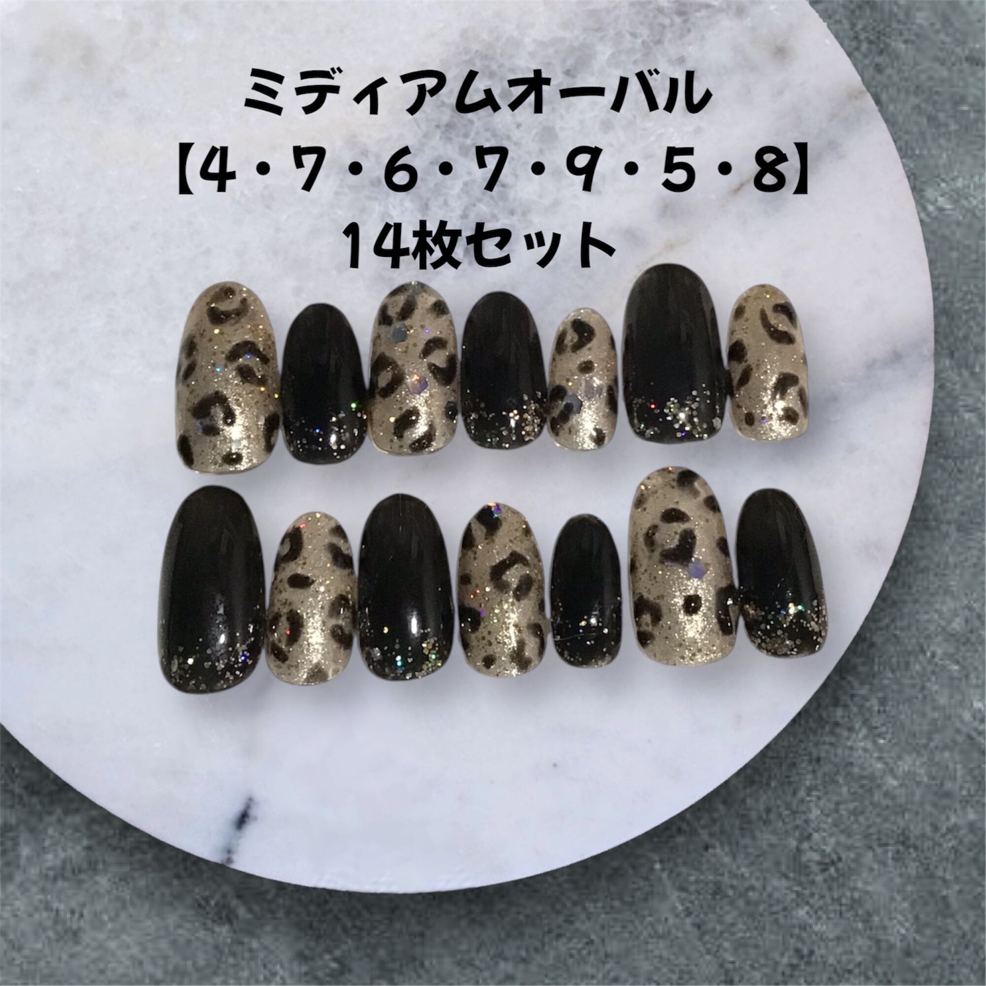 深みのあるブラックと輝くゴールド、アクセントのヒョウ柄アートで、大人のモード感を指先にプラス。