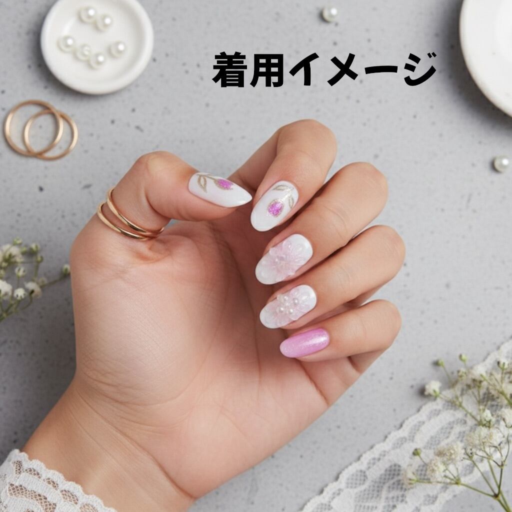 やわらかなピンクグラデーションに、ぷっくり立体フラワーと上品なゴールドの花模様を合わせました。
