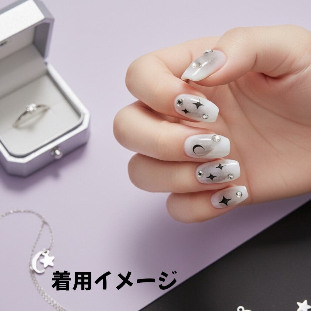 #MIYUKInail #ジェルネイルチップ #現品販売 #ハンドメイドネイル #ムーンネイル #スターネイル #月ネイル #星ネイル #シルバーネイル #モノトーンネイル #冬ネイル #夜空ネイル #夜景ネイル #クールネイル #大人ネイル #幻想ネイル #きらめきネイル #シンプルモード #バレリーナネイル #黒白ネイル #宇宙ネイル #ギャラクシーネイル #推し活ネイル #ライブネイル #撮影ネイル #神秘的ネイル #透明感ネイル #個性派ネイル #モード系ネイル #シルバーアクセ風ネイル