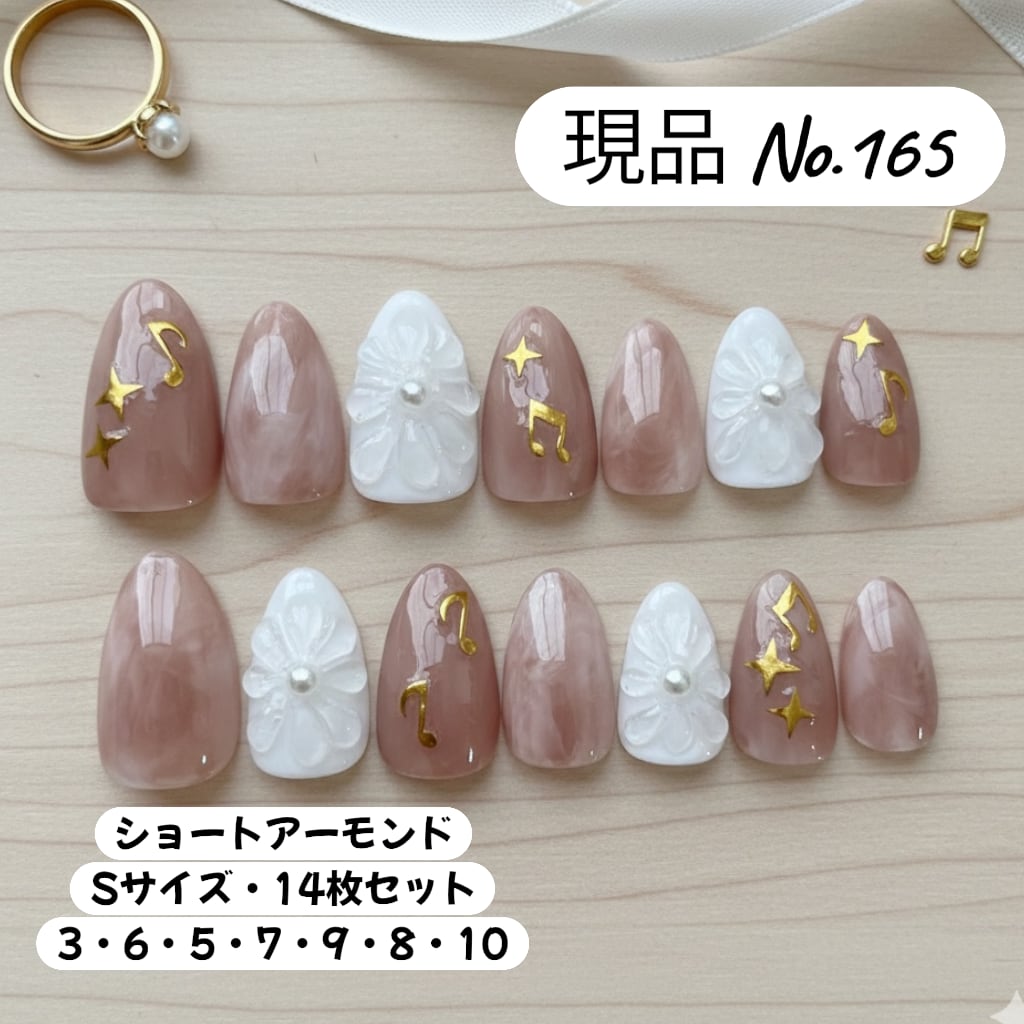 ほんのり透け感のあるミルキーブラウンに、立体フラワーと音符パーツを合わせた大人ガーリーなデザイン。